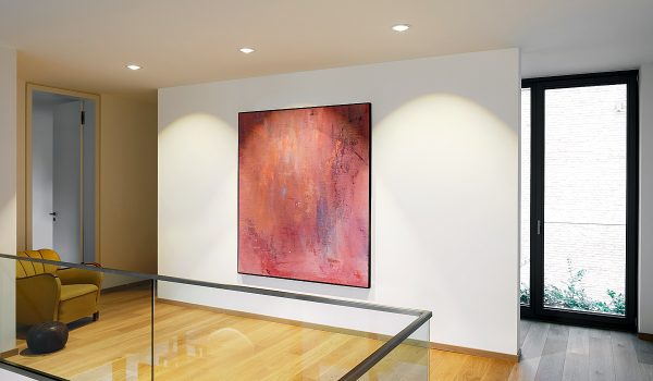 Für die Beleuchtung großer Wandgemälde eigenen sie am besten Einbaustrahler, Spots oder Schienensysteme. Hier können Sie selbst wählen, wie viele Leuchten, das Bild direkt von oben beleuchten.